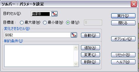 最後に「変化させるセル」にB2を選らんで「実行」を選んでください。
